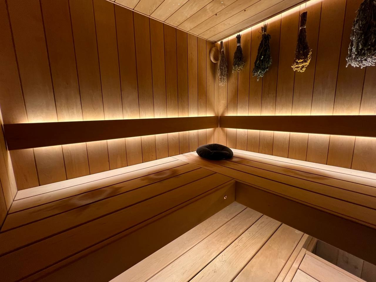 Баня в Каннельярви: термоольха, каменка Атмосфера, парящие полки и автоматическая подача холодного пара через форсунки в потолке