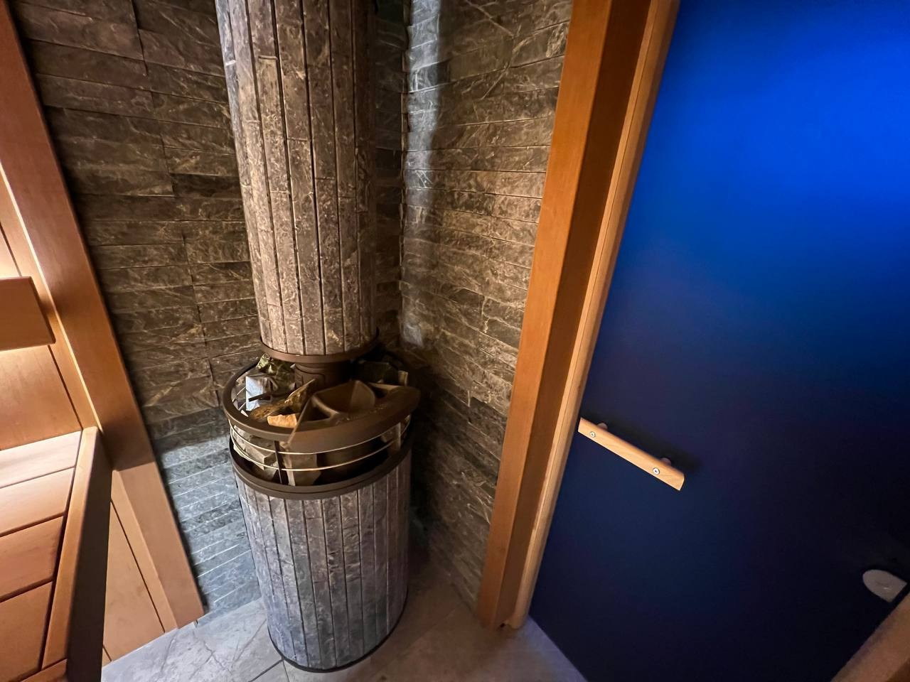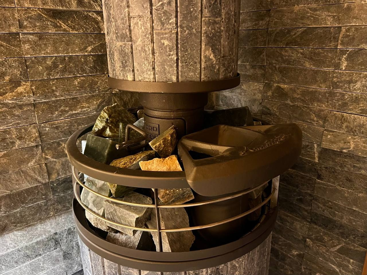 Новинка- Sangens в керамической облицовке со встроенным управлением, вокруг которой создана сауна из термоосины в Охтинском Парке