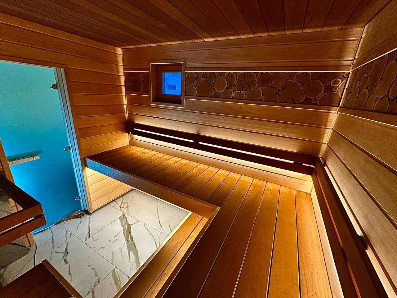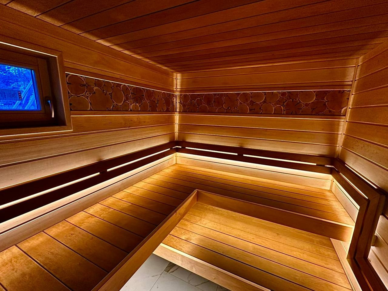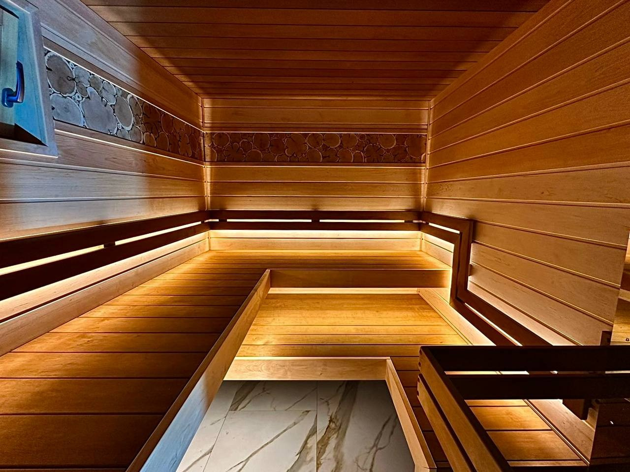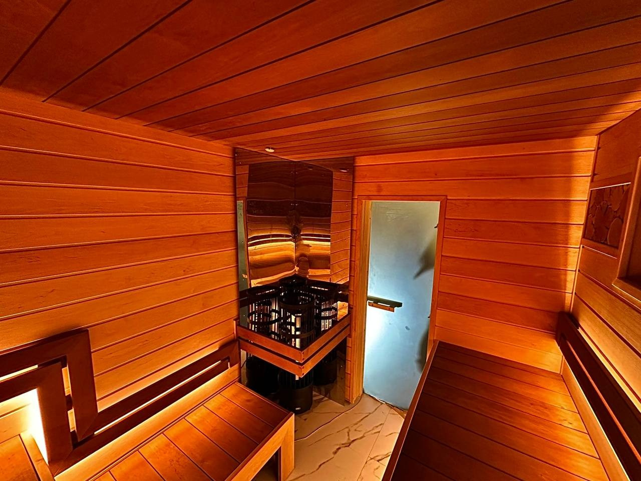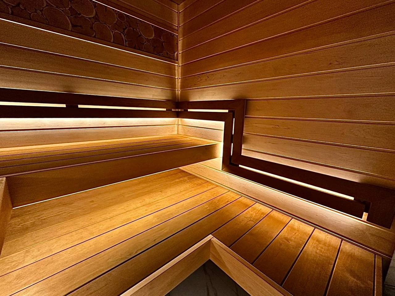 Сауна в Симагино в стиле STM: ольха и термоольха, парящие полки и максимум комфорта в компактном пространстве
