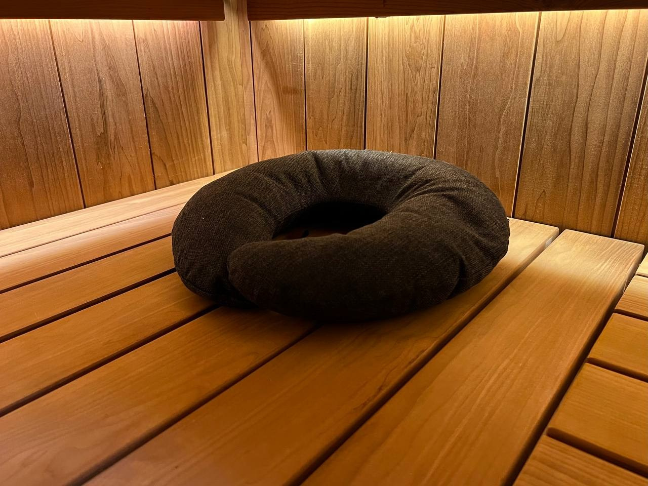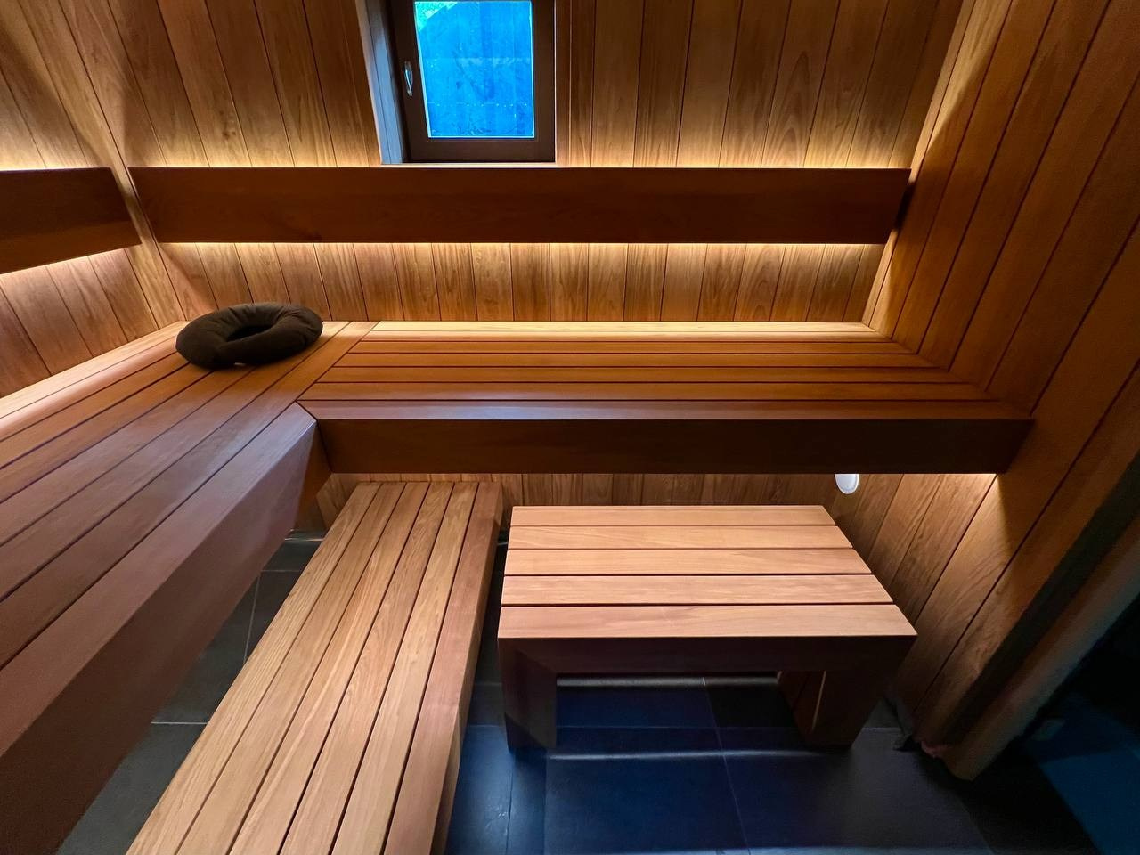 Сауна в Северной Жемчужине выполнена по проекту наших коллег VitaLine SPA. Разнопрофильная ольха, линейный свет и Sangens в редкой облицовке