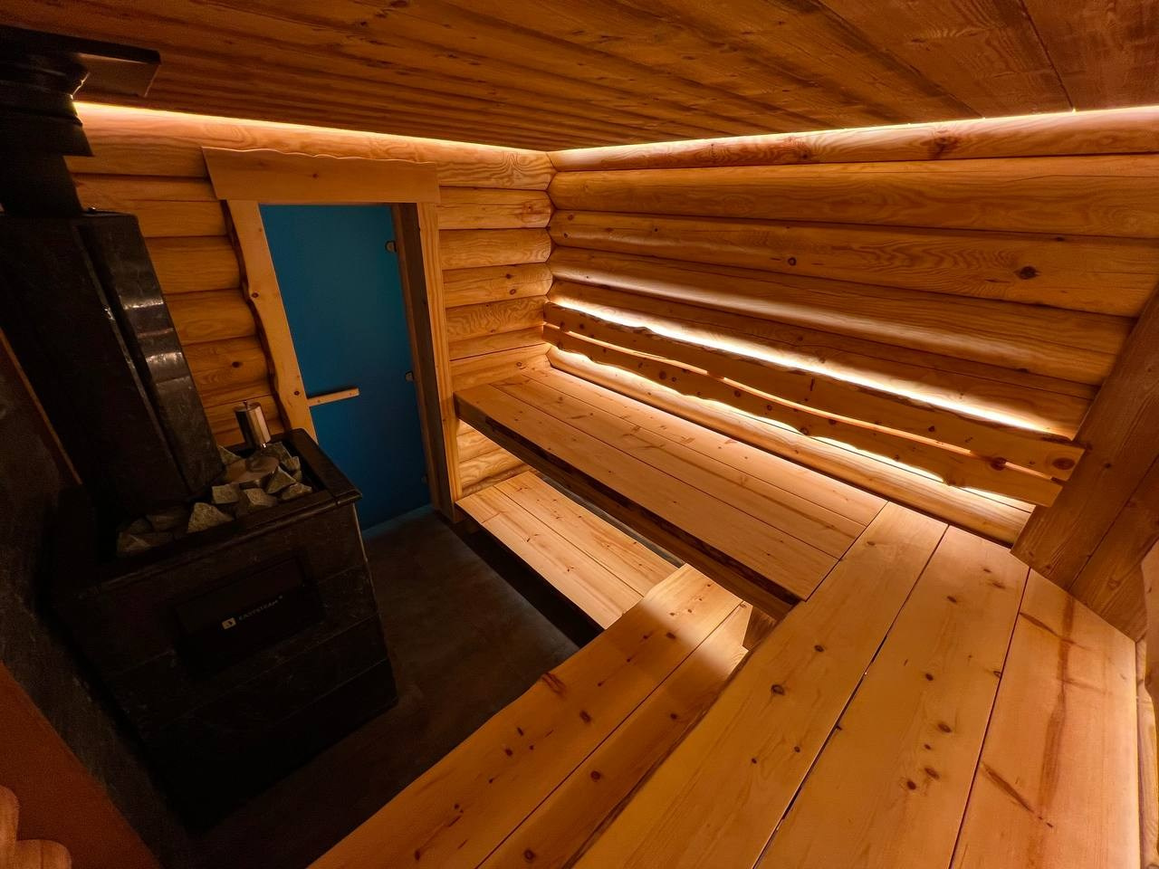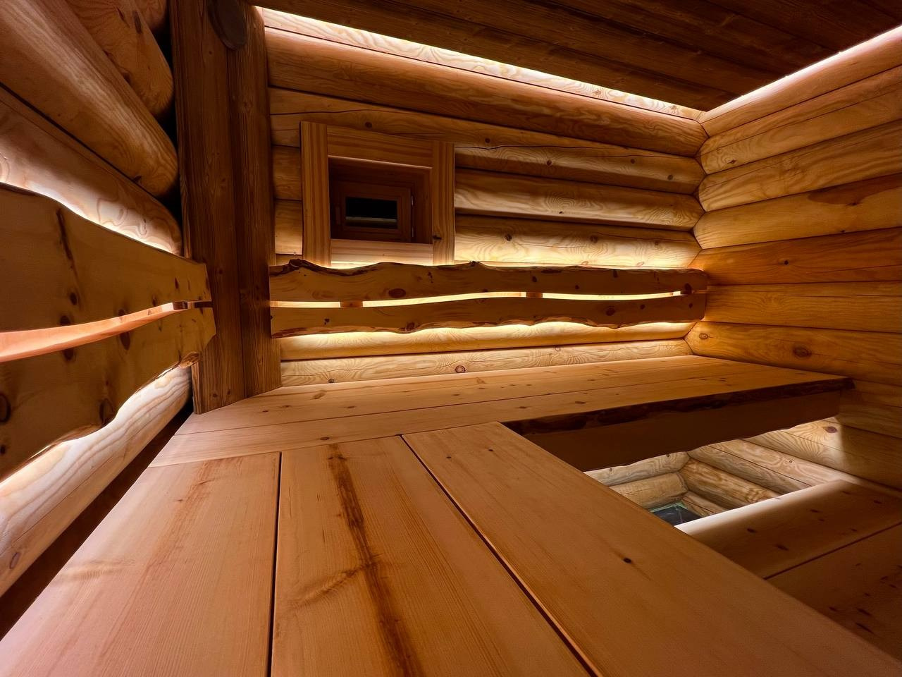 Баня в Каннельярви: термоольха, каменка Атмосфера, парящие полки и автоматическая подача холодного пара через форсунки в потолке