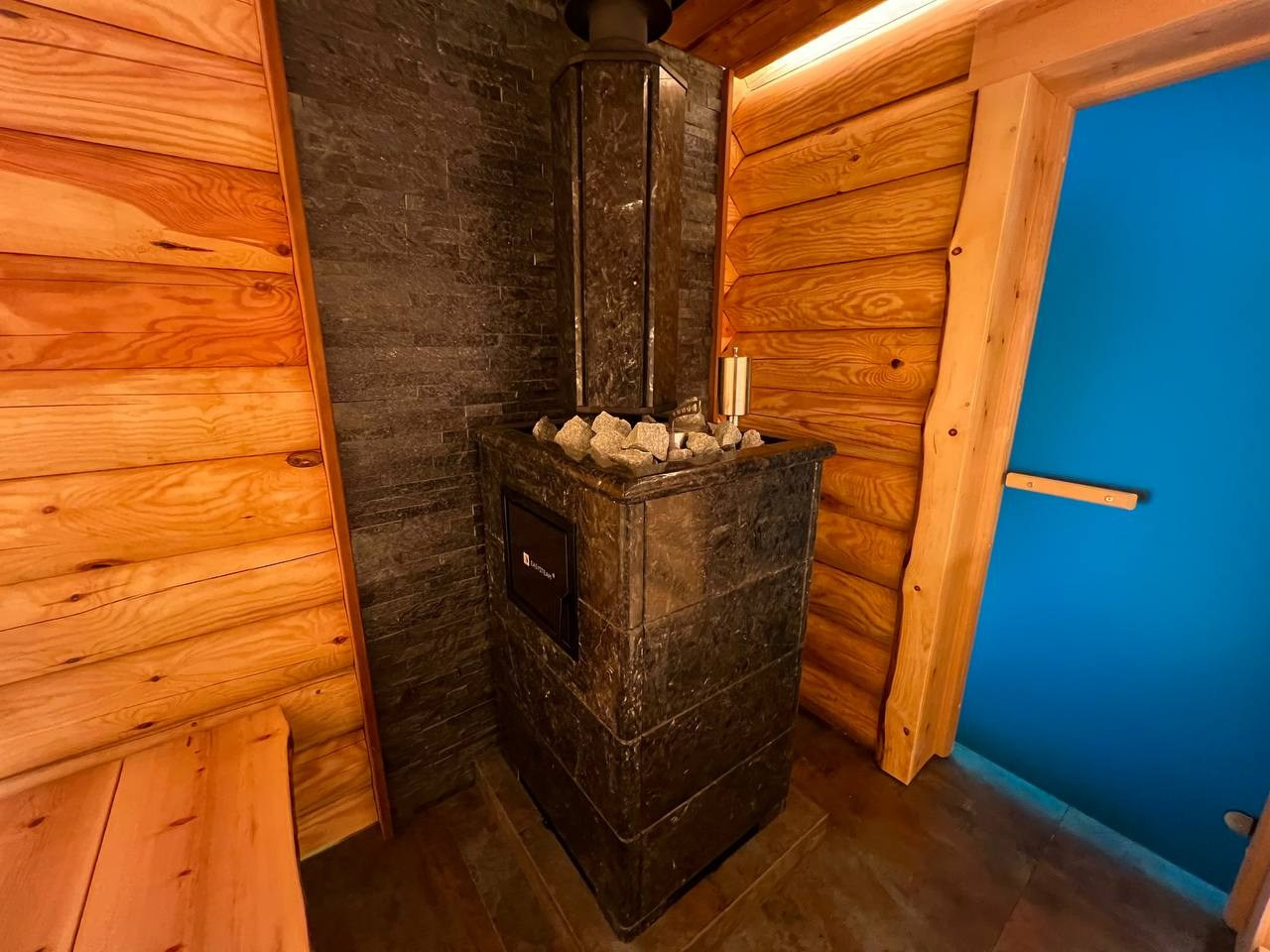 Новинка- Sangens в керамической облицовке со встроенным управлением, вокруг которой создана сауна из термоосины в Охтинском Парке
