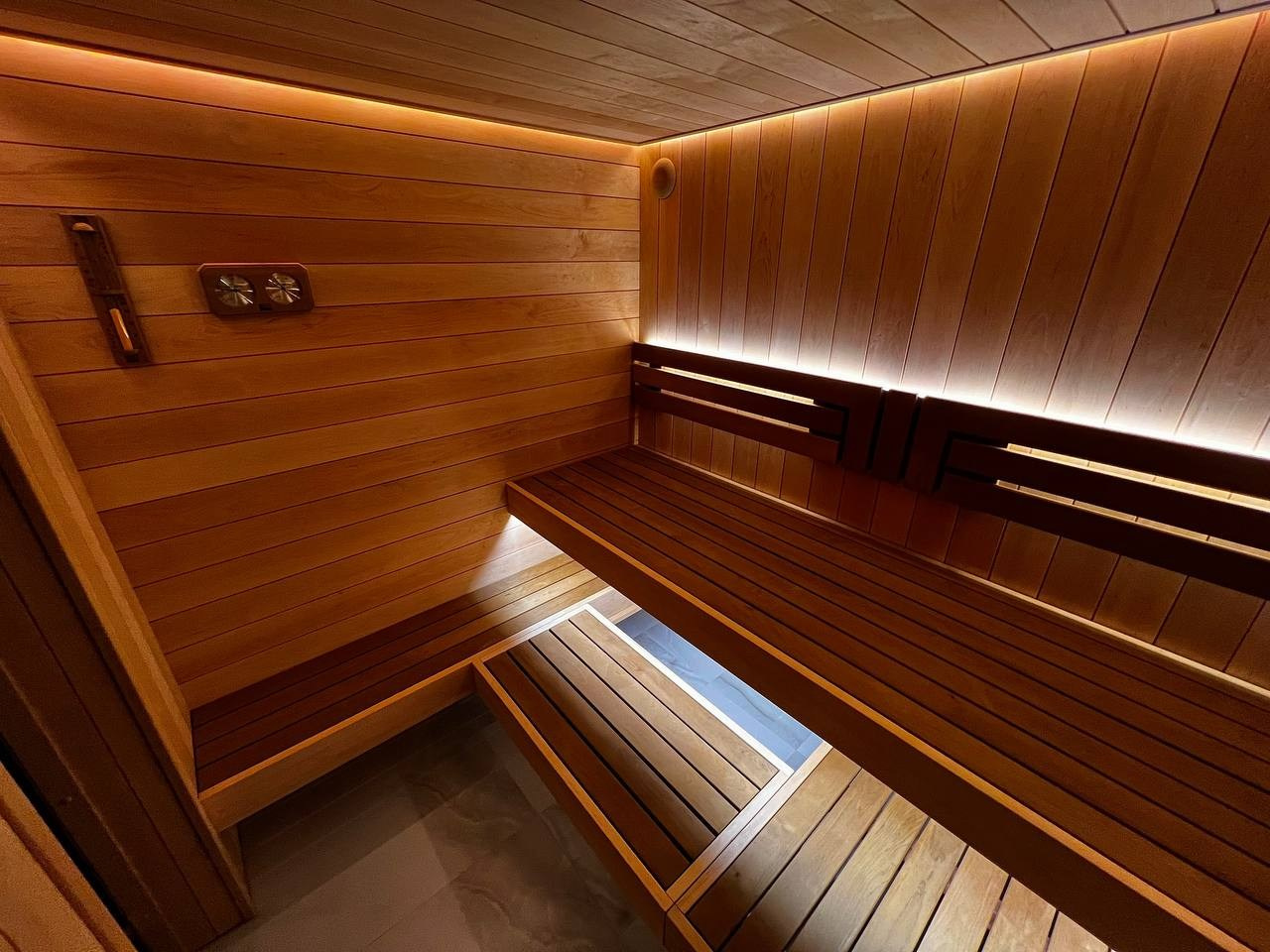 Сауна в ЖК Автограф. Несмотря на небольшие габариты, парная легко вмещает всю семью. Сауна в квартире уже не роскошь