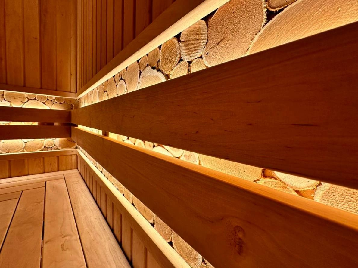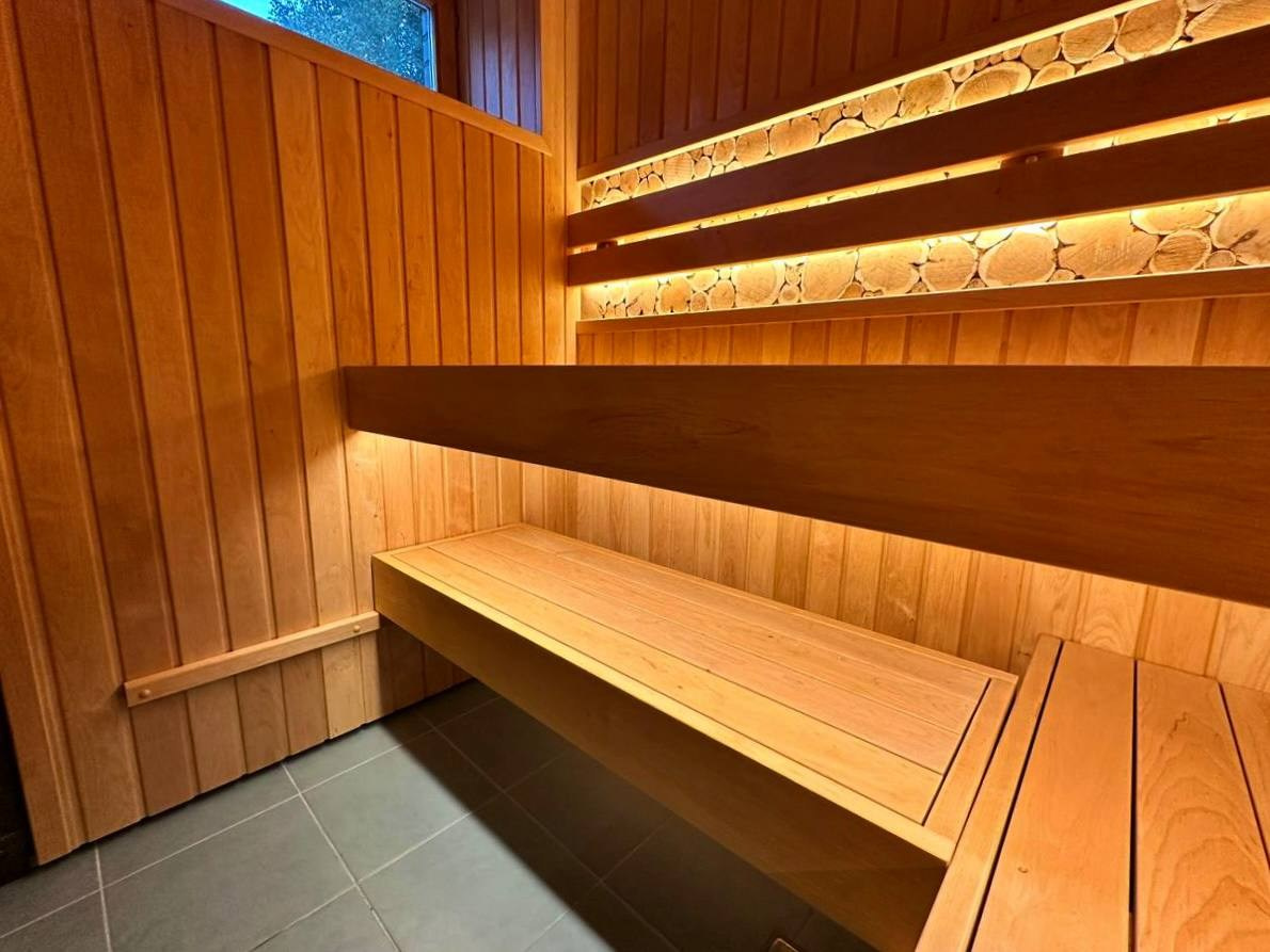 Шикарная парная в Денисово. Уникальный дизайн, большое количество сибирского можжевельника и талькомагнезит с подсветкой