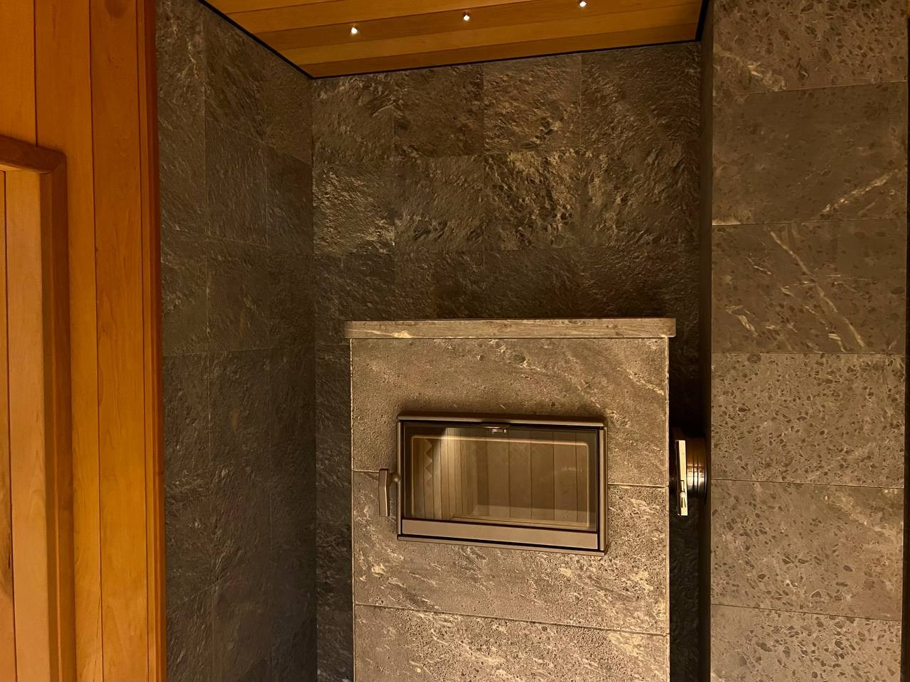 Новинка- Sangens в керамической облицовке со встроенным управлением, вокруг которой создана сауна из термоосины в Охтинском Парке